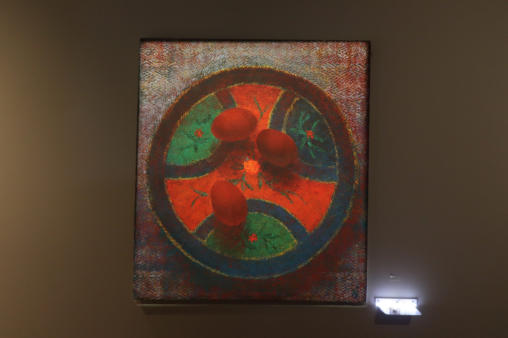 На выставке представлены две работы художника — «Пасха» (2013) и «Спецификация» (2022). В натюрморте «Пасха» заметны мотивы русской народной жизни. Сюжет картины представляет собой русский народный мотив. На холсте изображён расписной поднос, на котором лежат традиционно крашеные луковой шелухой пасхальные яйца. Натюрморт создан в авторской технике при помощи резного валика, имитирующего штрих-мазок, и имеет дышащую, вибрирующую поверхность. Лаконизм и минимализм, как изобразительный, так и литературный, даёт ощущение аскетичности праздника. Интонация картины в меру торжественная, в меру загадочная.