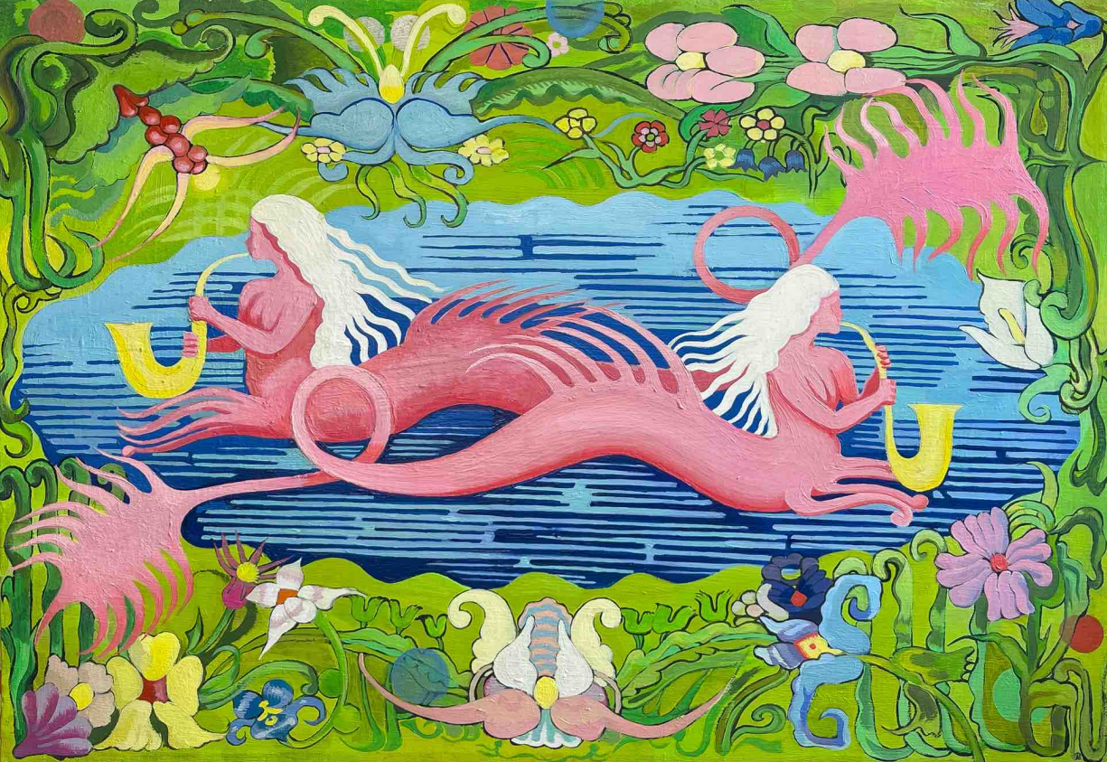 «Я люблю все мистическое, волшебное и эзотерическое, увлекаюсь таро, и однажды для выполнения учебного задания в Британке я вышла на шамана и шоумена Дардо Кусто, у которого взяла интервью… Образы и сюжеты моих композиций рождаются из автоматического рисования, поэтому я не всегда могу детально рассказать, что изобразила: это как фрагмент параллельного мира или сна наяву, которые содержат в себе закодированные метафоры. Биологические создания, ракушки, растения и животные появляются часто в моих рисунках, потому что мне всегда было интересно наблюдать за природой».