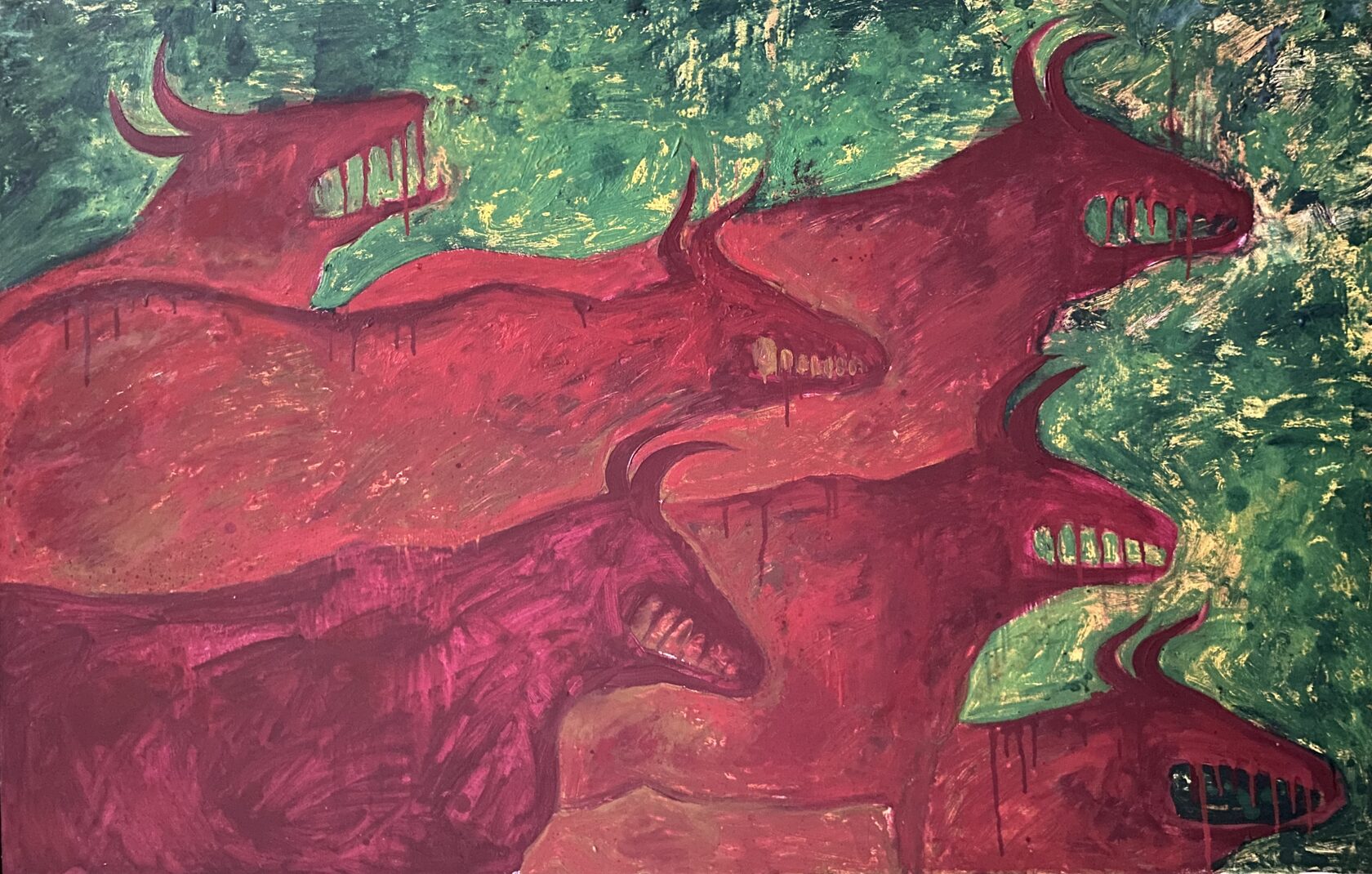 На выставке представлена экспрессионистическая работа «Свидетельства» (2017) из серии «Прогулки», немного напоминающая наскальную живопись, одна из первых живописных работ после периода перфомансов с арт-группой «Прачечная».